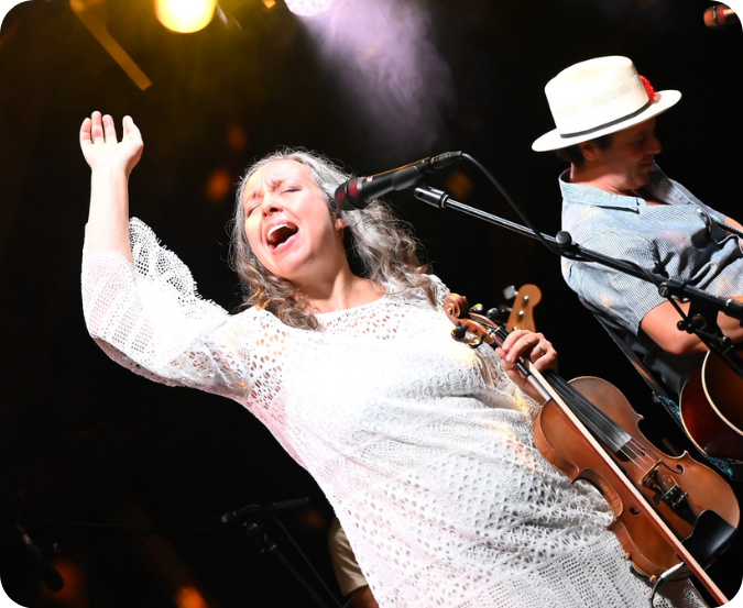 A dynamic force for community, Ruth co-produces the Winter and Summer Hoot festivals at the Ashokan Center and frequently teaches songwriting and fiddling at destination music camps.